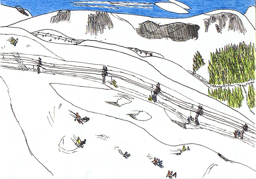 J’utilise actuellement les effets de couleur, les détails et un choix de thèmes imaginaires. D’abord je construis le paysage en gros, sans les détails, au crayon. Une fois que cela me convient je peins directement le ciel et le soleil avant le premier plan et je commence toujours par les couleurs claires. Je n’utilise pas du tout la peinture à l’huile à cause de son odeur. Je préfère l’acrylique ou l’aquarelle car les pinceaux se nettoient à l’eau. Après avoir peint le fond du support, je m’occupe des détails à la peinture sans les dessiner au crayon. Les techniques sont l’aquarelle, l’acrylique, la gouache, le fusain, le pastel et moins le crayon de couleurs. Le dessin que vous voyez sur cette page est un dessin de mon enfance en 1980.